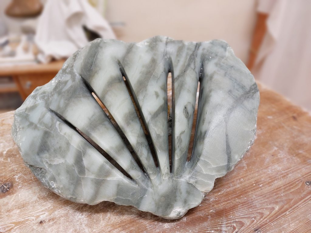 Diese Diashow gibt Einblick in den Entstehungsprozess der Skulptur Ginkgo-Blatt (2025) – von den ersten Arbeitsschritten bis zum vollendeten Kunstwerk.